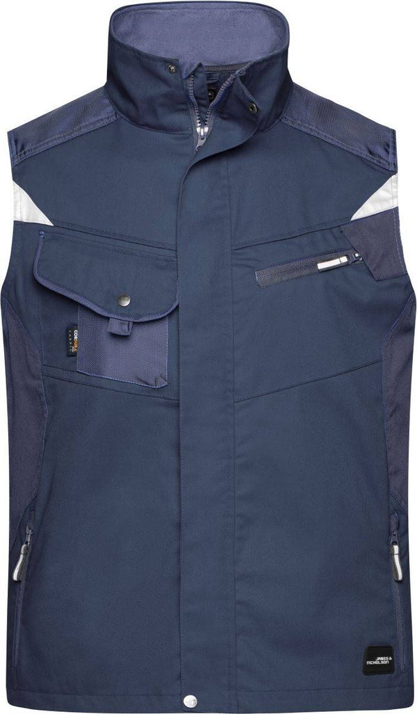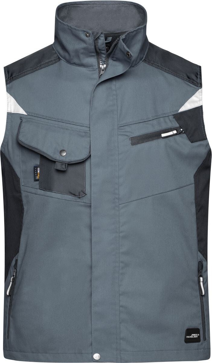 Stehkragen innen mit Fleece, Schulterbereich verstärkt mit Cordura®, durchgehend unterlegter Reißverschluss mit Windschutzblende, Seitentaschen, Brusttasche mit Klappe, Handytasche innen, großzügige Belüftungsöffnungen im Rückenteil, robustes und strapazierfähiges Mischgewebe, Reflexelemente (ohne Schutzfunktion) im Vorder- und Rückenteil, 60° waschbar, trocknergeeignet/niedriger Temperatur